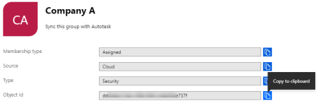 Um Benutzer mit Autotask zu synchronisieren, ist eine Gruppen-ID erforderlich. Nur dieser Gruppe zugewiesene Benutzer werden mit Autotask synchronisiert.