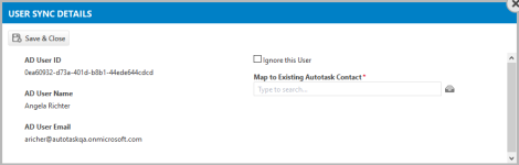 - Um den Benutzer manuell einem vorhandenen Autotask-Kontakt zuzuordnen, klicken Sie auf das Auswahlsymbol