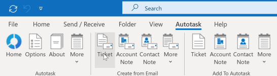 - In Outlook, go to Autotask > Add to Autotask group > Ticket.