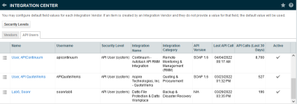 - Derselbe API-Benutzer könnte in mehreren Zeilen erscheinen, wenn er mehr als eine API-Version verwendet hat oder wenn er mehr als einem Integrationsanbieter zugewiesen ist.
