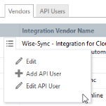 Mit dieser Option können Sie einen API-Benutzer für den ausgewählten Lieferanten erstellen. Siehe Einen API-Benutzer hinzufügen oder bearbeiten. |