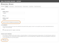 Ohne Lizenz für die erweiterte eingehende E-Mail-Verarbeitung erhalten Sie ein kostenloses benutzerdefiniertes Postfach, das dazu verwendet werden kann, Autotask-Tickets aus Kaseya-Ticketbenachrichtigungen zu erstellen.