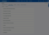Auf dieser Registerkarte konfigurieren Sie die Einstellungen für Ihre eigene Firma in Autotask PSA, Ihre Mitarbeiter und die Zugriffsrechte, die Sie ihnen zuweisen. Siehe Konfigurieren von Einstellungen für Ihre Firma und Ihre Mitarbeiter. |