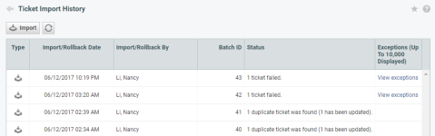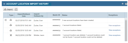 - Gehen Sie zur Seite Importhistorie für diesen Objekttyp.