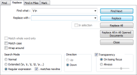 - Um ganz einfach von einer Instanz zur nächsten zu springen, klicken Sie auf das Symbol Finden und suchen Sie nach „\r\n“. Geben Sie nichts im Feld Ersetzen durch ein.