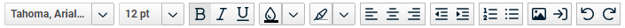 - Die Editoren für die Abschnitte „Seitenkopf“, „Seitenfuß“, „Rechnungskopf“, „Rechnungsfuß“ und „Anlage“ der Seiten Rechnungsvorlage gestalten, Angebotsvorlage gestalten und Bestellvorlage gestalten . Siehe Rechnungsvorlagen gestalten, Angebotsvorlage gestalten oder Bestellvorlage gestalten.