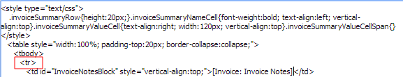 In der Rechnungsvorlage wird der Rechnungsfußinhalt einmal angezeigt, und zwar auf der letzten Seite der Rechnung. Wenn der Inhalt des Rechnungsfußes beim Drucken nicht auf die Seite passt, wird er aufgeteilt und geht auf der nächsten Seite weiter. Unternehmen Sie die nachfolgenden Schritte und fügen Sie den Style „page-break-inside: avoid;“ ein, um einen Seitenumbruch zu vermeiden und den Rechnungsfußinhalt auf einer Seite zu behalten.