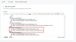 - Klicken Sie, um den Rechnungskopf zu bearbeiten. Der Editor wird in der Designansicht geöffnet.