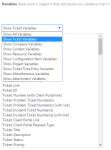 Bei Feldern, die Rich-Text unterstützen, sind Variablen sowohl als Rich-Text- als auch als Nur-Text-Version verfügbar. Die Standardversion ist Rich-Text. Zum Beispiel verwendet Ticket: Beschreibung Rich-Text. Ticket: Beschreibung (Nur-Text) verwendet Nur-Text.