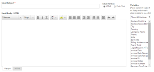 | HTML-Editor mit Bereich für Variablen (bei Vorlagen für Benachrichtigungsmails) |