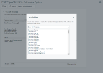 | HTML-Editor mit Fenster für Variablen (bei Angebots- und Rechnungsvorlagen) |