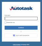 - Verwenden Ihres KaseyaOne-Benutzerkontos: Wenn Ihr Administrator KaseyaOne aktiviert und Ihnen ein Benutzerkonto zugewiesen hat, können Sie die Anmeldung bei Autotask mit Ihrem KaseyaOne-Benutzerkonto aktivieren.