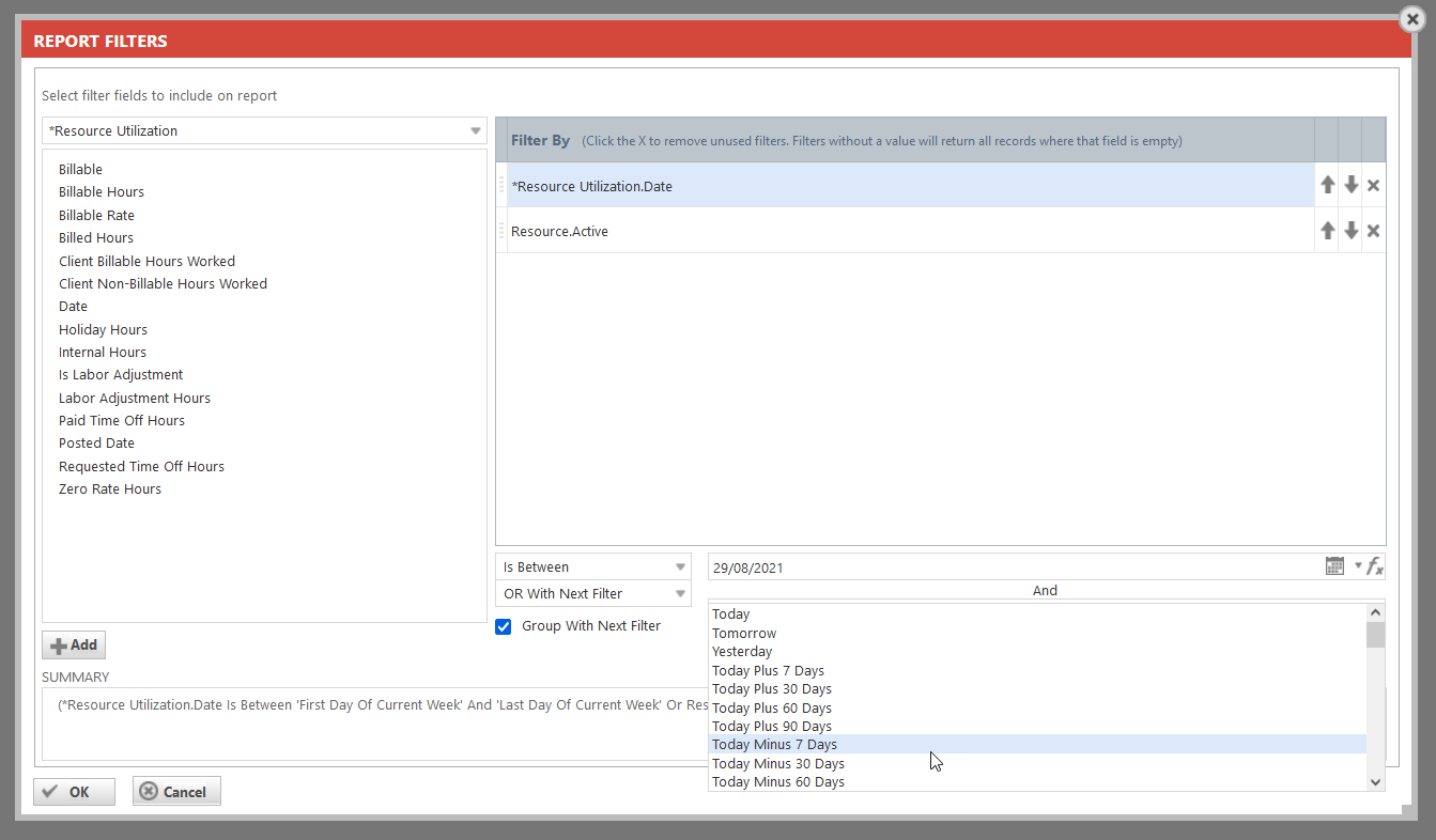 Dieser Bericht zeigt die prozentuale Auslastung für jeden Mitarbeiter an. Spaltenbeschreibungen finden Sie unter Spaltenbeschreibungen für den Mitarbeiterauslastungsbericht (gilt für Standardbericht und LiveReport). Dieser System-LiveReport ist dafür gedacht, ähnliche Ergebnisse zu generieren wie der MitarbeiterauslastungStandardbericht, den er in Zukunft ersetzen wird. Er bietet mehr Filter-, Ausgabe- und Veröffentlichungsoptionen als der Standardbericht. Es kann kopiert, geändert und geplant werden.