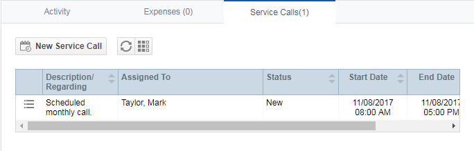 Auf der Registerkarte Servicetermine einer Aufgabe können Benutzer mit den erforderlichen Zugriffsberechtigungen Servicetermine erstellen und verwalten, die mit der Aufgabe verbunden sind.