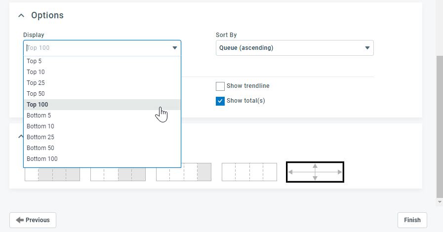 Sowohl Widgets für Diagramm als auch Raster haben die folgenden Funktionen: