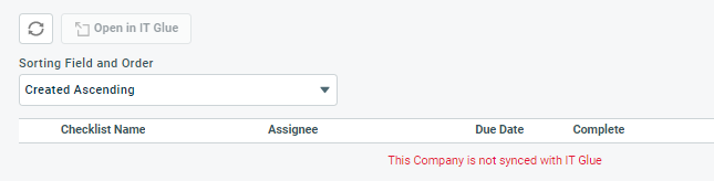 - Wenn es keine Checklisten gibt, weil die Firma nicht mit IT Glue synchronisiert ist, wird dies in Autotask angegeben.
