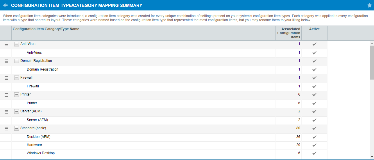 Mit der Veröffentlichung von Autotask Version 2020.1 und den neuen Gerätekategorien wurde für jede eindeutige Kombination von Einstellungen, die auf den Gerätetypen Ihrer Autotask-Instanz vorhanden sind, eine Gerätekategorie erstellt. Kategorien wurden auf jedes Gerät mit einem Typ angewendet, der sein Layout teilte. Diese Kategorien wurden basierend auf dem Gerätetyp benannt, der die meisten Geräte darstellte, aber Sie können sie auf dieser Seite nach Ihren Wünschen umbenennen.