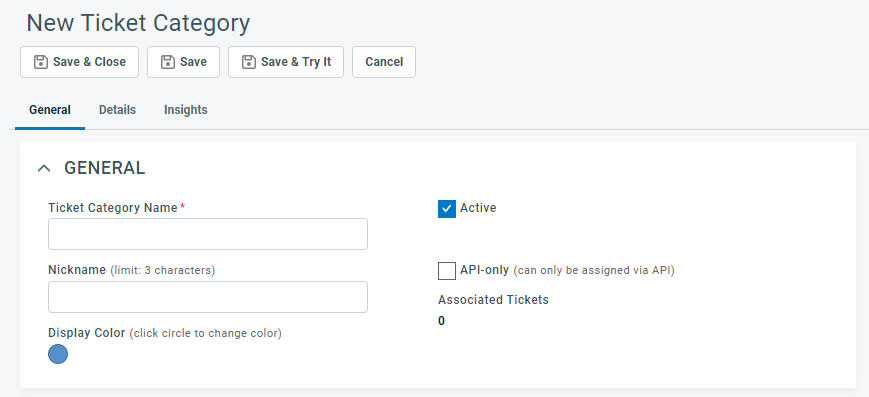 HINWEIS Dieses Thema beschreibt die Registerkarte Allgemein der Seite „Neue Rubrik“ und „Rubrik bearbeiten“. Diese Seite verfügt über zwei weitere Registerkarten: Details und Insights. Details zu diesen Registerkarten finden Sie unter Die Registerkarte „Details“ und Die Registerkarte „Insights“.