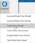 - On the Autotask menu, in the Create from Email group, select Ticket.