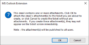 - A dialog box opens, asking you if you want to attach the email's attachments to the ticket or note you are creating in Autotask.